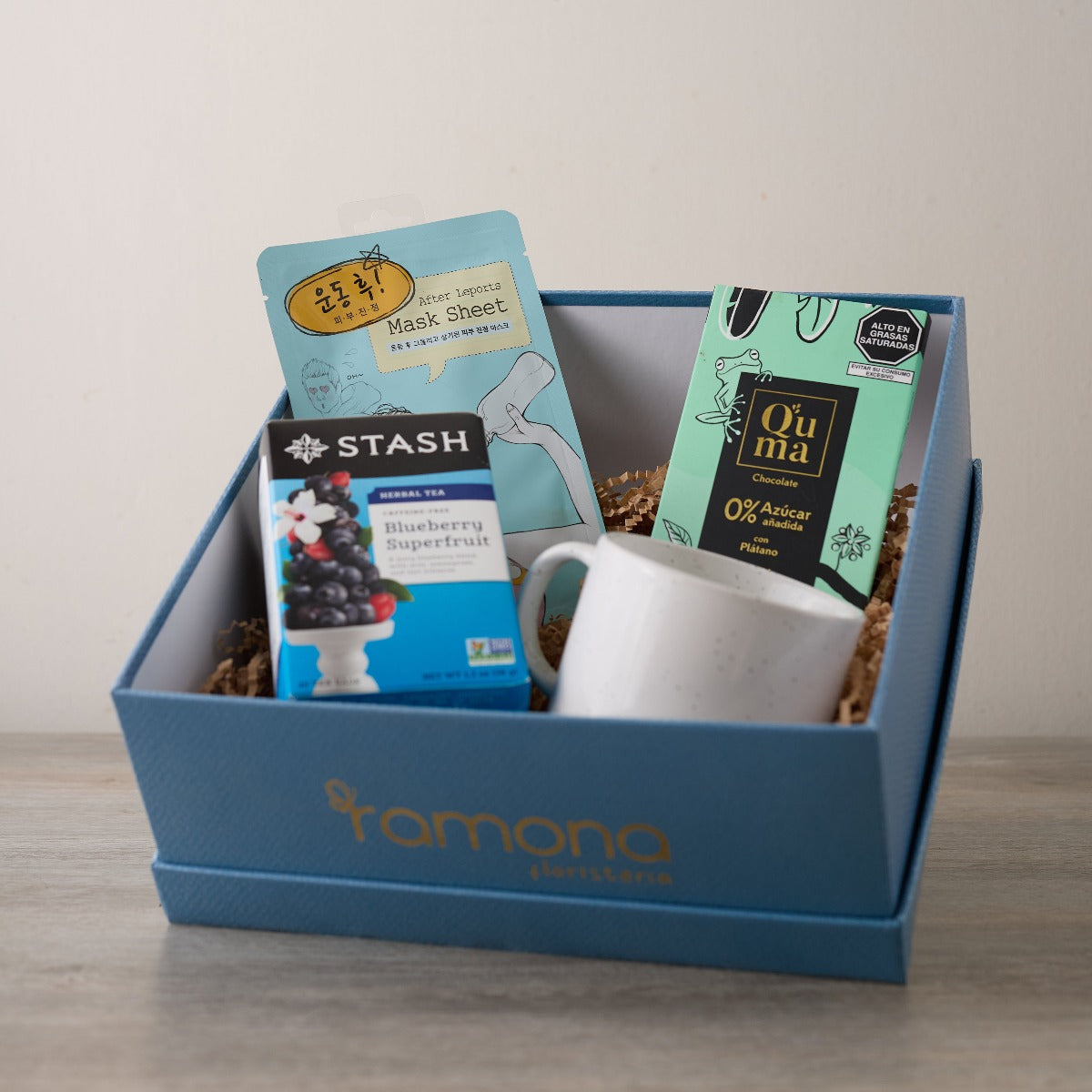 5. Pack infusionista ha sido creado para mandar una sorpresa a alguien especial. Incluye un una taza, unos chocolates, un delicioso té, una mascarilla facial y un ramito de flores secas. Sin duda alegraras a alguien.