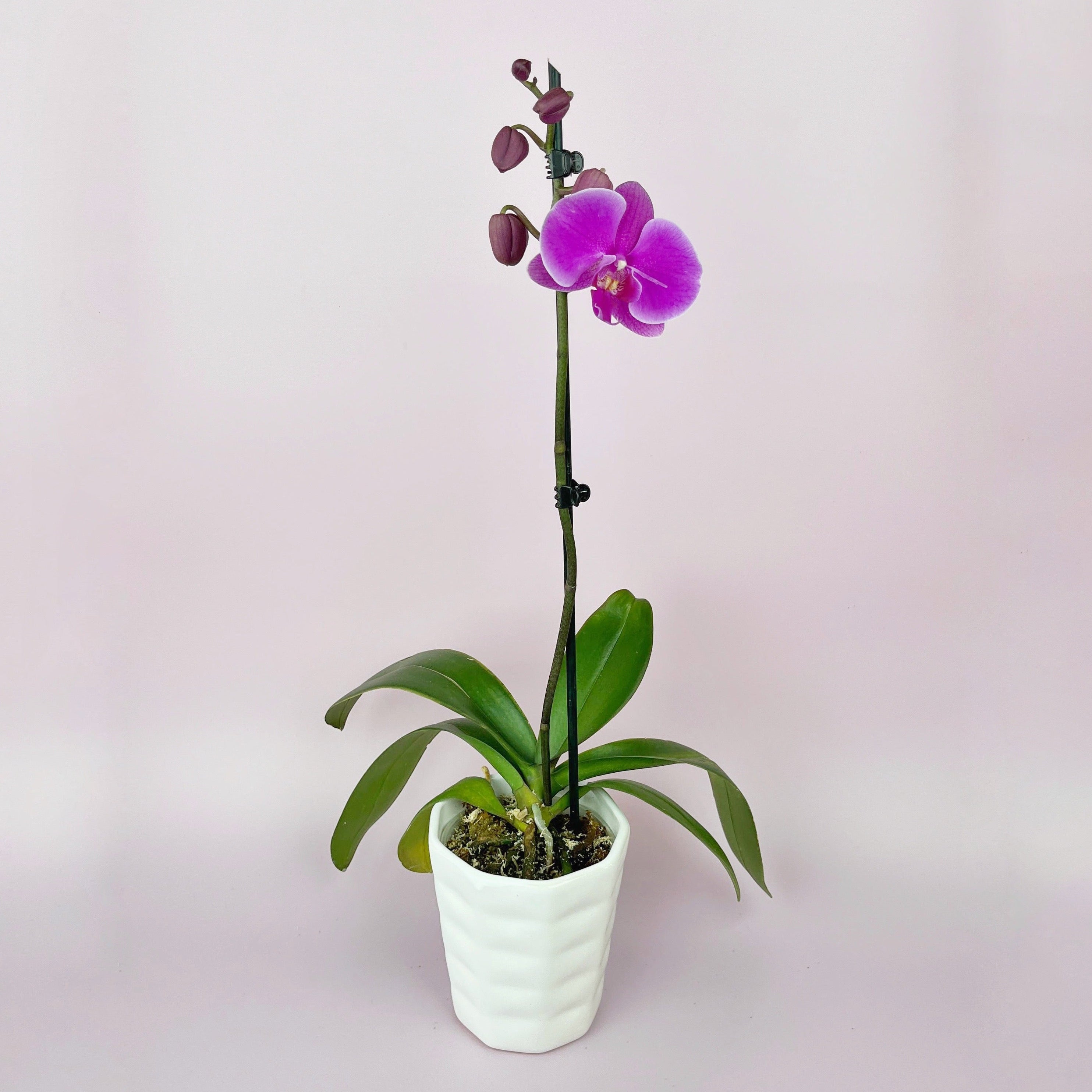 A diferencia de los ramos tradicionales, esta orquídea puede florecer durante más de tres meses, manteniendo su belleza intacta. Sus estilizados tallos añaden un toque de serenidad y distinción a cualquier espacio, convirtiéndola en una opción perfecta para sorprender en cualquier ocasión. 🌿